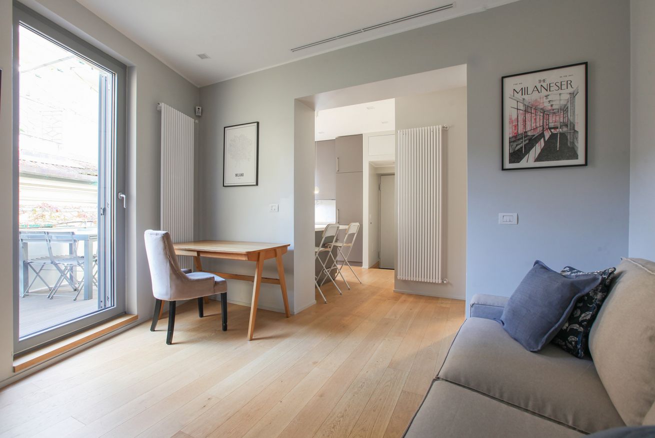 Un esclusivo bilocale di nuova realizzazione con terrazza privata, curato nei minimi dettagli secondo i più alti standard Hacca Collection, nel cuore di Porta Venezia.