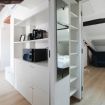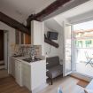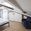 L'appartamento si trova all'ultimo piano mansardato di un elegante palazzo d'epoca, con un delizioso terrazzino che si affaccia sui tipici tetti milanesi.