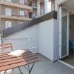 L'appartamento di 60 metri quadrati, che può ospitare fino a 5 persone, si trova al quinto piano ed è composto da un'accogliente zona giorno con angolo cottura attrezzato e un delizioso terrazzino, due ampie camere da letto (una con un letto matrimoniale standard e una con letto king size), un divano letto in una delle camere e un bagno con doccia.